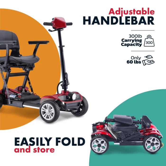 ✔ Foldable and Travel Friendly Weighing just 64 lbs (without seat and basket), the Rubicon FX01 folds easily, fitting into garages or small car trunks for travel and storage with SriDe Mobility.